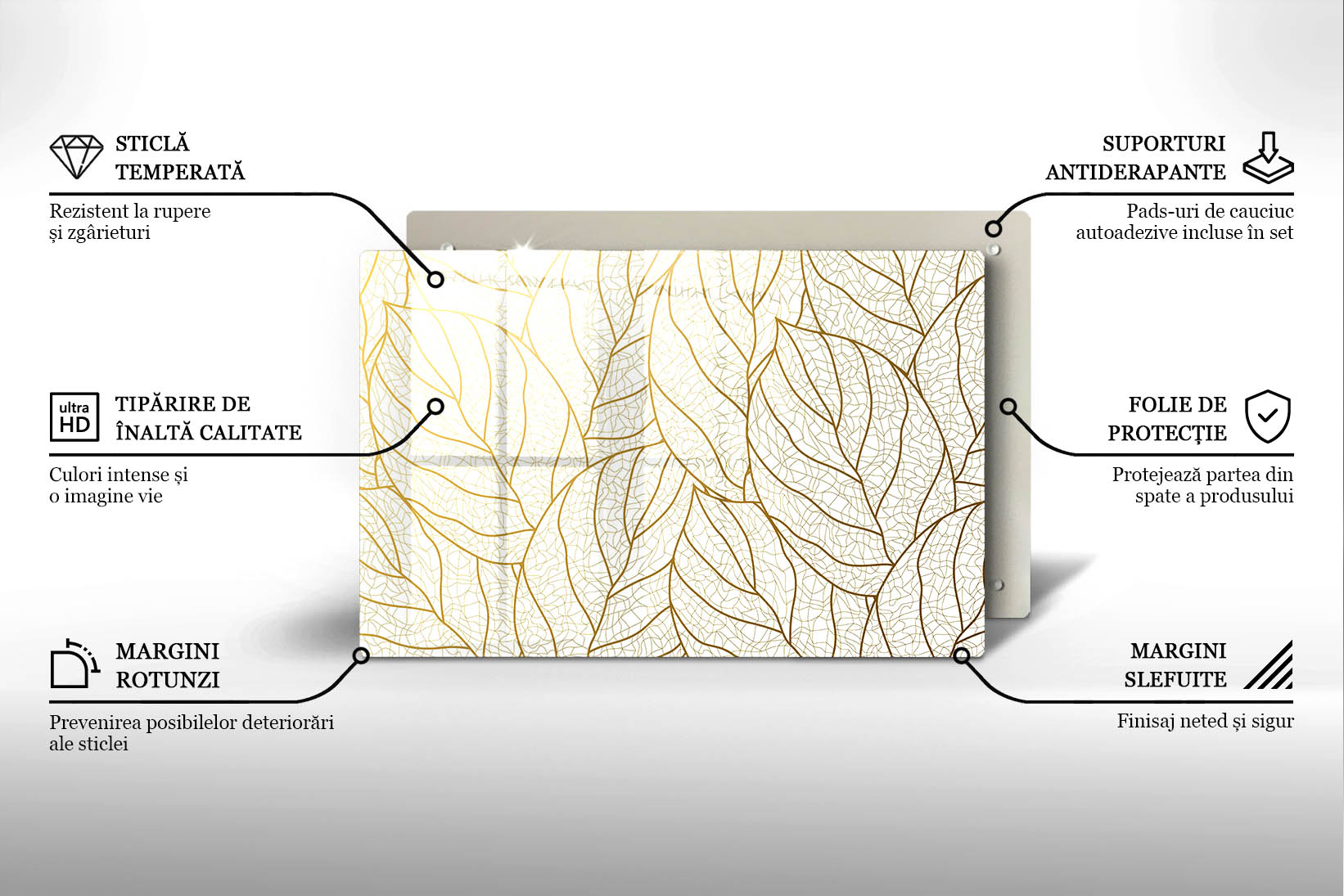 Material: acril turnat transparent (PMMA) cu imprimeu pe stratul inferior